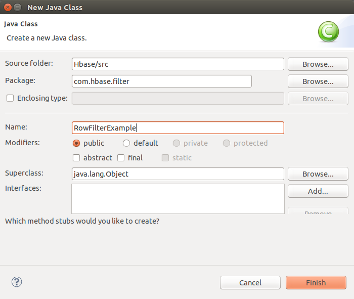 2.新建一个com.hbase.filter包,并创建RowFilterExample 类